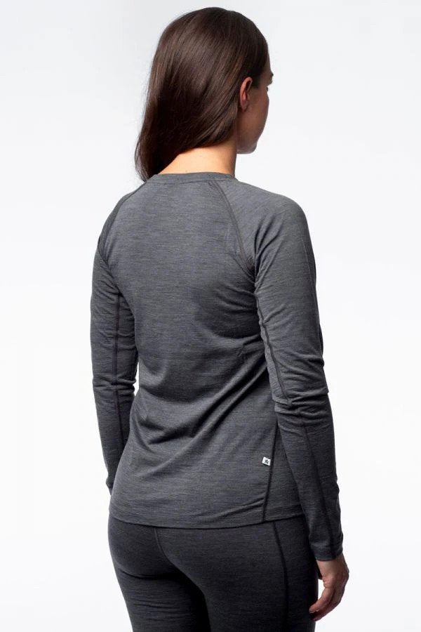 Merino Women's Base Layer Crewneck Top, Dark Grey